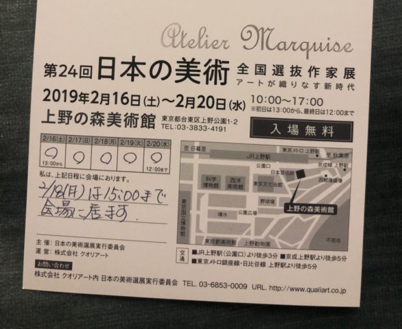 私は毎日会場にいる予定ですが、2月18日(月)は夕方から別件が入っている為、