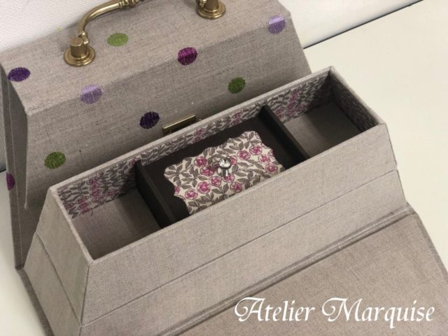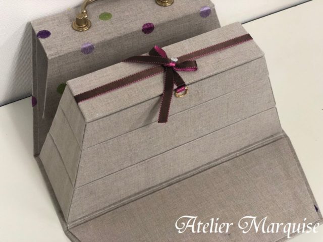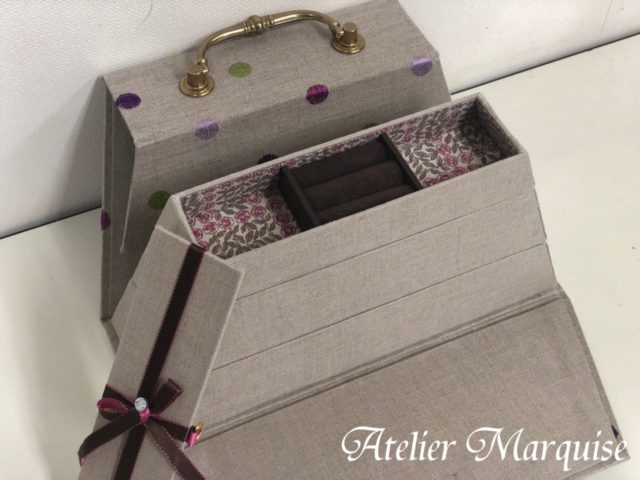 ステップアップクラスの課題の『バッグ型のジュエリーボックス』。