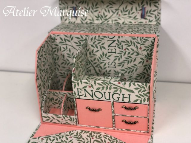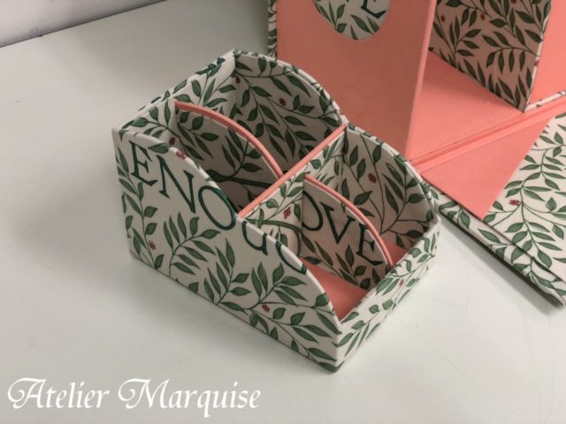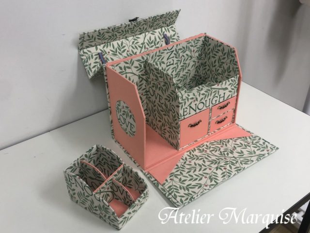 横幅30センチ以上ある大きなサイズのカルトナージュ道具ボックスです。