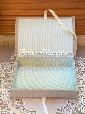 ご自分が作られた作品をカルトナージュで作った箱に入れて、