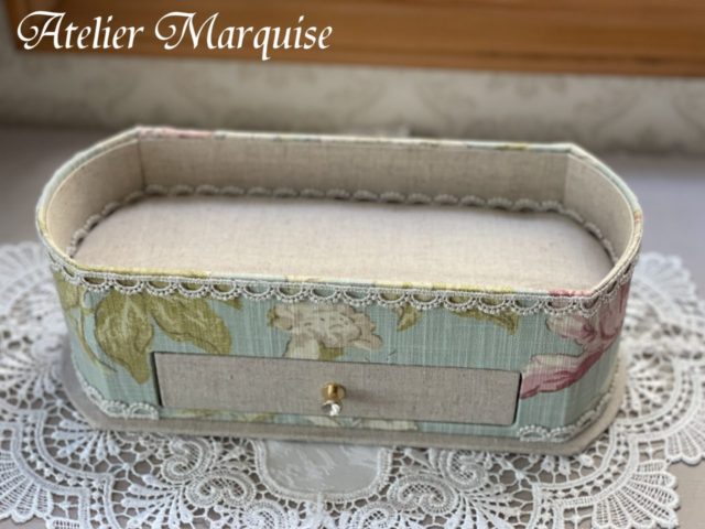 さて、今日はとあるカルチャー様に依頼され、7月末にカルトナージュ作品を